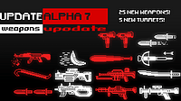 Well finally, the Alpha 7 update! 25 new weapons have been updated, as well as 5 new turrets. + Added lots of new weapons. Some of them can't be unlocked by normal means yet so you'll jus' get them fr...